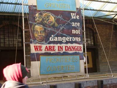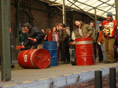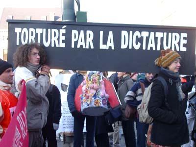 Vermits de reguliere media weer aan berichtgeving doet alsof ze het over een andere planeet hebben, bieden wij enkele foto impressies van hoe het er in Brussel aan toeging. Kijk zelf maar.  een ander europa is mogelijk  dat zeggen zij ook...  nederlandse aanwezigheid  vrouwen in het zwart   zwart en rood  en roze  de ruiten van een leegstaand politiekantoor snevelen     aankomst van de betoging aan tour & taxis, met muziek en meetings  de politie houdt mensen gevangen op het domein van tour &#38 Rond het middaguur hadden enkele tienduizenden betogers, waaronder antifa´s, pacifisten, anarchisten, feministen, groenen, socialisten en diverse andere andersglobalisten zich verzameld bij het klein kasteeltje. De demonstratie verliep voor het overgrote deel vreedzaam en kronkelde zich over een tijdspanne van drie uur langs het ´grote kasteel´ richting tour en taxis, alwaar muziek werd gespeeld, een extra podium stond voor toespraken en iedereen in een grote tent kun bijkomen van de ijzige vrieskou. Tijdens de demonstratie hadden enkelen zich uitgeleefd op de ruiten van twee banken, een mercedes en een al tijden leegstaand politiekantoor. Dit bleek voldoende voor de militaire politie om het laatste deel van de stroom betogers de toegang tot tour en taxis te verbieden met behulp van waterkanonnen en traangas. Uiteindelijk werden deze demonstranten toch toegelaten, maar vervolgens sloot de politie, na het blussen van een vuurtje met een waterkanon, de hekken van tour en taxis geruime tijd te sluiten. Toen na onderhandelingen van de organisatoren de hekken weer geopend werden, bleken alledrie de uitvalswegen volledig afgesloten te zijn door militaire politie met waterkanonnen en pantserwagens. De menigte bewoog zich van straat naar straat, om elke keer geblokkeerd te worden. Bij navraag waarom niemand naar huis mocht, zei de politie eenvoudigweg orders te hebben iedereen tegen te houden. Door deze provocerende houding van de politie die geruime tijd duurde, begonnen enkele betogers boos te worden, maar een grote rel bleef uit. Uiteindelijk werden groepjes mensen een voor een doorgelaten na grondig te zijn gefouilleerd. Door kleine groepjes mensen vervolgens de straten door te duwen, fragmenteerde de politie de demonstranten. ´Verdachte´ betogers werden in hechtenis genomen. Vrijwel alle reguliere media besteedden enkel aandacht aan de enkele gesneuvelde ruiten of gaf veel te lage nummers over het aantal aanwezige betogers. Slechts het Franse TV5 gaf rond middernacht een redelijk goed overzicht van de demo en wijtte de reden dat d14 relatief rustig en zonder gewonden was verlopen aan het feit dat de politie orders had gekregen geen charges uit te voeren. |