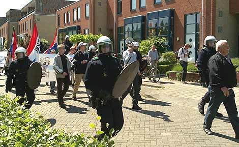 zo'n 50 nazi's staan op het Da Vinci plein. De politie zet de Leeghwaterlaan af. | | Niet marcheren | Arrestogroep - 23.05.2009 14:34
