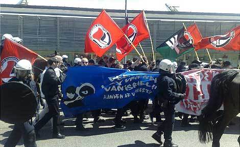 De nazi's worden op de trein gezet. Er is een NVU vlag spontaan in de fik gevlogen. | | Zwaaien | NN - 23.05.2009 15:48