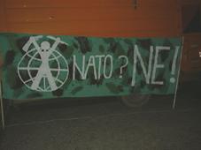 In Praag vond er vandaag een grote manifestatie plaats tegen de NAVO.  2 pm Momenteel staan zo'n 1000 actievoerders klaar om te vertrekken. De groep bestaat vooral uit anarchisten, maar er zijn ook communisten en mensen van Attac. De vertrekplaats ligt dicht bij de Rode Zone. Beneden kan je links naar de Rode Zone en rechts van de Rode Zone weg. Enkel de organisatoren kennen de precieze route. Voor de andere actievoerders is het afwachten. Er is zeer veel nationale en internationale pers aanwezig die op een heel sensationele manier te werk gaat. Ze filmen de actievoerders van heel dichtbij en van zodra er ook maar iemand de kleinste beweging maakt, cirkelen ze er meteen omheen. De politie is zeer zichtbaar aanwezig. Er zijn veel Tsjechische spandoeken en ook enkele Engelse met opschriften als "No blood for oil" en "Boycot USA". 3 pm De manifestanten vervoegen nu een groep van 150 anarchisten. Ze zingen "We all live in a terrorist regime" op de tonen van de Ringo Star-song "Yellow Submarine". 4 pm De betoging nadert nu het Congrescentrum. Vooraan loopt een grote linie politie-agenten. De sfeer is nog altijd kalm, maar toch al een stuk meer gespannen dan in het begin. De pers is nog altijd bijzonder agressief. Daarnet hield iemand een speech waarin hij zei dat er geen "war on terror" bestaat. "War IS terror." De centrale slogan van de betoging is "Nato. No pasarán." Een groepje van 20 manifestanten mag de politieblokkade passeren. Zij dragen poppen die de wereldleiders voorstellen mee. Aangekomen op een plaats waar veel mensen staan te kijken, geeft iemand een speech waarin hij vertelt dat de poppen staan voor alles waar de betogers tegen zijn. Daarna keert het groepje terug naar de grotere groep betogers. 5 pm De agressieve en sensatiegerichte manier van werken van de pers was al de hele tijd een doorn in het oog van de betogers. Daarom houden ze nu de pers op een afstand met een haag inééngehaakte betogers. Ondertussen raakte de situatie bijna even oververhit toen de politie de weg blokkeerde en de betogers daardoor tegenhield. Maar alles verliep al snel opnieuw even rustig als voordien. 5.25 pm De groep betogers passeert momenteel op 150 meter van het Congrescentrum. Ze maken er een lawaaidemo van. De spandoeken worden hoog in de lucht gestoken. De stoet gaat verder. Alleen de organisatoren weten of er nog plannen zijn om de zone binnen te dringen. Daarnet werd een politielinie makkelijk omzeild. Momenteel is de duisternis ingetreden waardoor de politie minder zichtbaar is. 7 pm Daarnet werd de betoging ontbonden. De betogers zijn terug aangekomen op de Namesti Miru, het plein waar de betoging om 2 pm vertrokken is. Daar staan momenteel nog enkele honderden betogers tez ingen, te praten of gewoon te bekomen van de betoging. De betoging verliep al bij al rustig. Er werd geen poging ondernomen om de Rode Zone binnen te dringen. Daarvoor waren de krachtsverhouding wellicht ook wat te nadelig. Een Indymediaperscentrum is er niet meer. De media-activisten maken nu gebruik van de vele internetcafés in de Tchechische hoofdstad. De mainstream pers, en dan vooral fotografen, waren massaal aanwezig op de anti-nato-betoging in Praag vannamiddag. Naar schatting met meer dan honderd. Hun opdringerige en sensatiezuchtige gedrag werkte vele betogers danig op de zenuwen, en beperkte bij tijden zelfs de bewegingsvrijheid van de betoging. Tijdens een groot deel van de betoging, vooral tijdens een symbolische theatrale actie, en na het weer samenkomen van beide groepen, gedroegen vele journalisten zich als uitgehongerde wolven die zich op een brokje vlees wierpen. zie N21 in Praag: Mainstream pers op de anarchistenbetoging