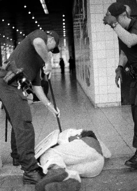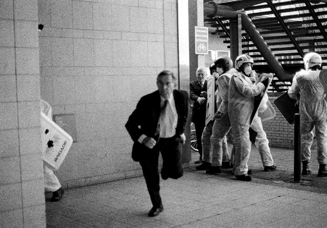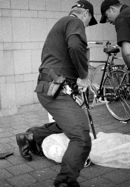 Laatste nieuws 23.00 uur Alle arrestanten op één na, van de groep die voor 'lijk' ging liggen, zijn inmiddels vrijgelaten. Eén persoon zit nog vast, waarschijnlijk vanwege het niet bij zich hebben van ID of vanwege het anoniem willen blijven. De SEALS zitten echter nog vast en zullen de nacht in de cel moeten doorbrengen. Onduidelijk is nog of ze morgen vrijgelaten zullen worden of in verzekering worden gesteld. Website: http://devrije.nl | | Foto | De Vrije - 14.10.2005 01:15