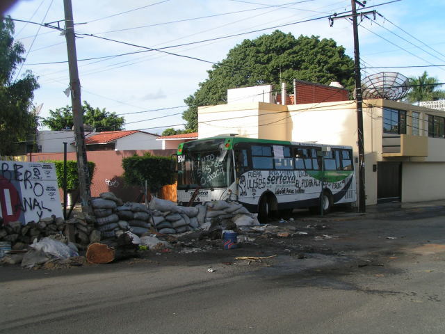 de ingang van de radiostudio  een van de barrikades  en nog een Hierbij een foto van de ingang van het radiostation. Er zitten constant 2 mensen op wacht met een balk tussen zich in, zodat er geen mensen zomaar binnen kunnen lopen. Er paar dagen geleden waren er mensen van de PRI binnen en dat willen ze beslist niet meer. En wat foto´s van de barricades bij het radiostation. | | bussen | Krizz - 11.10.2006 18:44
