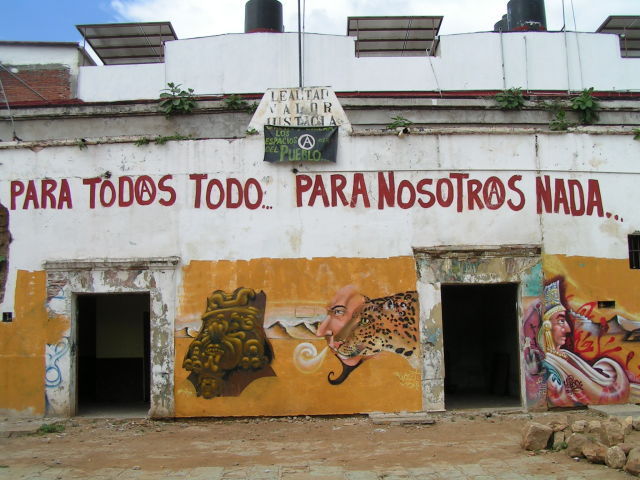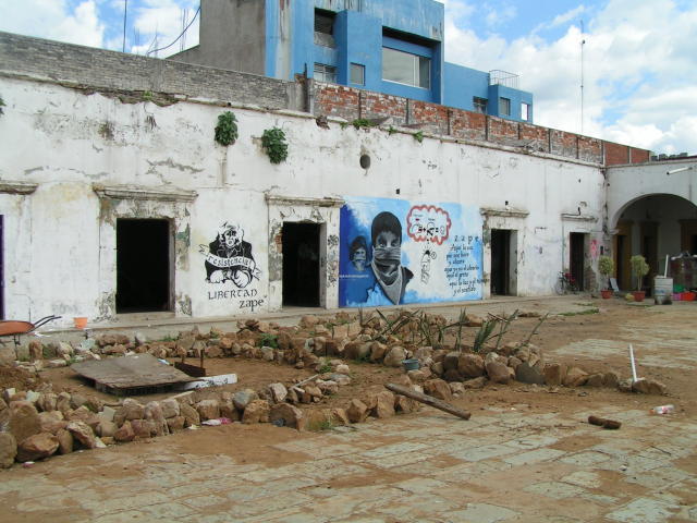 Enkele foto´s van het enige kraakpand in Oaxaca. Welkom in OIR. Vroeger was het een politiebureau nu wonen er jonge anarchisten die hier een vrijplaats aan het opbouwen zijn incl. bibliotheek, inforuimte, vergaderruimte enz. | | kraakpand | Krizz - 12.10.2006 00:09