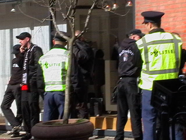 Ik stond bij de demo van de NA, die heeft niet mogen vertrekken vanwege groepen hooligans en "AFA" in de stad. hierop heeft de NA maar een manifestatie gehouden waar wat leuzes zijn geroepen. Op een gegeven moment kwam er een groep van zo'n 30 mensen aangewandeld die kwade bedoelingen hadden. het was echter geen "afa", maar mensen die waarschrijnlijk bij jeugdstorm horen. deze groep mensen is weggestuurd door de politie, waarna de kans groot is geweest dat ze de hooligans tegen het lijf zijn gelopen. Dit heb ik echter niet gezien. wél heb ik gezien dan de helft van de Jeugdstorm mensen zijn aangehouden (ongeveer 15). Van omstanders in de buurt vernam ik dat ze hard heen en weer hebben gerend. ik heb het vermoeden dat de NA mensen niets is overkomen. Maar meer info zal vast wel ergens opduiken! vriendelijkr groet van mij | | verduidelijking? | fred - 17.03.2007 17:03