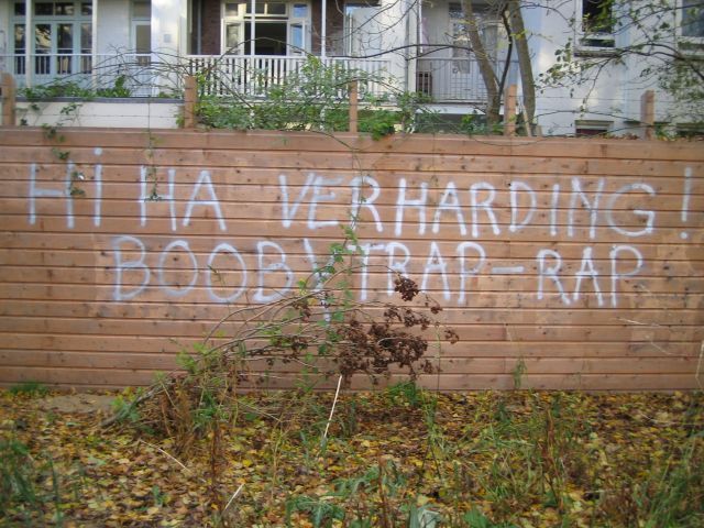 Voor het swomp waren Yuppen al niet welkom  Boebytrap!?! Het terrein wordt steeds meer volgebouwd met tenten en dergelijke. De meeste daarvan worden ook nog eens mooi opgeleukt. Kom ook langs met je tentje of caravan of met je potje verf en spuitbus en maak het swomp mooi en gezellig!!!!! | | inspreken om 20.00 uur | kraakgroep de Pijp - 13.11.2007 16:55
