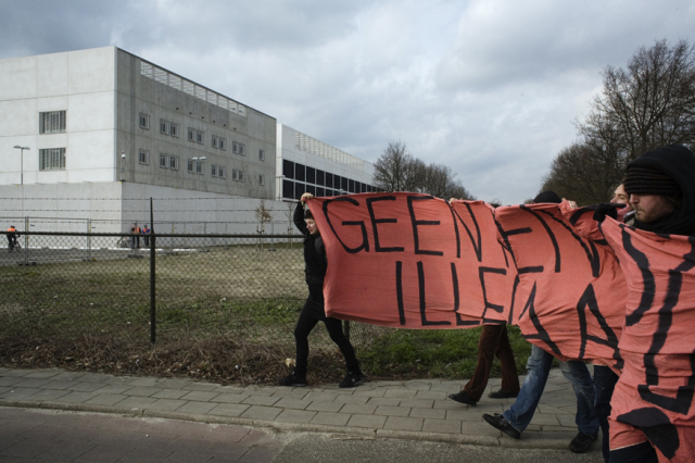 Zaterdag 8 maart zal er een reeks demonstraties tegen vreemdelingendetentie plaatsvinden. Om 13.00 begint het eerste protest bij de bajesboten in Zaandam, daarna zullen achtereenvolgens Schiphol en Alphen aan den Rijn bezocht worden. Door middel van veel lawaai zullen we de gevangenen laten weten dat zij niet worden vergeten. Demonstreer mee tegen de opsluiting van vreemdelingen en migranten!  de poster Migranten en vluchtelingen in Nederland worden op vernederende en discriminerende manier behandeld. Het uitzetbeleid is onmenselijk en onacceptabel en schendt de rechten van mannen, vrouwen en kinderen. De bajesboten en detentiecentra zijn een onderdeel van een vreemdelingenbeleid dat gericht is op uitsluiting, opsluiting en deportatie. De dagelijkse praktijken op de boten en in detentiecentra zijn een verschrikking. Vernedering en racisme voeren de boventoon, noodzakelijke medische zorg wordt niet verleend, en de gevangenen worden structureel geοntimideerd doormiddel van repressieve maatregelen zoals isolatie. Afgelopen februari heeft dit regime een Algerijnse man de dood in gejaagd. Opgesloten in een bajesboot te Rotterdam werden zijn hartklachten behandeld met hoestsiroop. Meer medische zorg werd niet geboden, onderzoek werd niet gedaan. Het verhaal van Mohamed Boumedin vertelt ons wat er gebeurt als mensen protesteren tegen de behandeling in de bajessen. (zie http://www.indymedia.nl/nl/2008/02/50574.shtml) Ter ondersteuning van Mohammed en alle andere gevangen in vreemdlingendetentie zullen we zaterdag 8 maart aanstaande van ons laten horen! Geen mens is illegaal! De demotour start om 13:00 bij de bajesboten te Zaandam. Het tijdsschema is als volgt: 13:00 Zaandam 14:15 Schiphol 15:30 Alphen aan den Rijn Voor meer informatie mail: demolawaai@yahoo.com Er vertrekt een bus vanuit Amsterdam, om 11:30 verzamelen Bollox (1e Schinkelstraat 14-16). Kaartjes voor deze bus zijn 3,50 en kunnen via bovenstaand mailadres gereserveerd worden. ( zie ook http://www.indymedia.nl/nl/2008/02/50131.shtml ) De vorige keer dat er een lawaaidemonstratie gehouden werd bij de bajesboten te Zaandam zijn alle arrestanten gearresteerd. Zonder enige reden werden zij enkele dagen vastgehouden, en vervolgens zonder dagvaarding, onderzoek of wat dan ook weer op straat gezet. Het was duidelijk dat de Zaanse politie protesten bij de bajesboten in de kiem wil smoren en mensen ontmoedigen hier te demonstreren. Het is daarom belangrijk dat we zaterdag met veel mensen zijn en laten zien dat wij ons niet laten afschrikken door dit soort intimidatietactiek! E-Mail: demolawaai@yahoo.com |