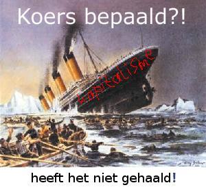 Kapitalisme op de klippen gelopen! Tijd om ons van dit geweldadige systeem te ontdoen. Maar pas op! de zaken-gieren staan weer in de rij om van de ontstane ellende weer klinkende munt te maken. Er blijven vragen. Wat willen we er voor in de plaats? Welke elementen moeten er zeker in zitten? Hoe kunnen we mensen weer zover krijgen om over dit soort zaken fatsoenlijk na te denken in deze extreem-egoistiese tijd? Is het niet beter om met veel mensen achter de computer vandaan te komen en in het echt in actie te komen voor een betere wereld? Is het niet beter om de rest van de burgers uit te blijven leggen WAAROM dingen in elkaar zitten zoals ze zijn en niet anders en wat zijn de belangen erachter? (Fortis kan overleven dankzij geld afgenomen van de burger) Is het geen goed idee om eens een goed onderzoek te doen naar waarom zoveel mensen hun activiteiten stoppen en thuis blijven zitten, hoe krijg je ze weer mee?