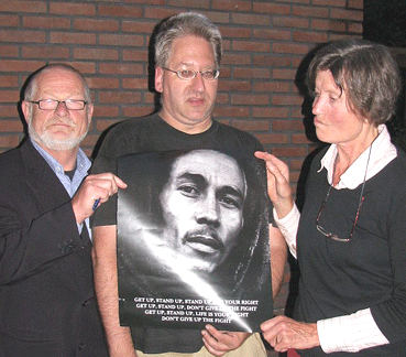 Kamp Zeist: Protest tegen uitzetting Isaac Opoku wordt breed gesteund . Gijs Wildeman , voorzitter van de raden van kerken Zeist en Pieter Wout Duquesnoy, provinciaal statenlid van de SP Utrecht, zette op verzoek van Els Brouwer , initiatiefneemster van de maandelijkse wakes bij kamp Zeist hun handtekening op de mega briefkaart .  Isaac Opoku kwam naar Wageningen vanuit Ghana toen hij 8 jaar was. Inmiddels is hij 19. Woensdag 8 juli werd hij bij zijn vader uit het huis gesleept omdat zijn vergunning is verlopen. Isaac volgt hier een studie, hij heeft een bijbaan en is inmiddels meer Nederlander dan Ghanees. Op 16 juli volgt een rechtzaak, waarin beoordeeld wordt of Isaac op 17 juli terug moet naar Ghana. Dus dan wordt hij in zijn eentje op het vliegtuig naar Ghana gezet. Hij zit tot die tijd in het detentiecentrum Zeist . Inmiddels spreekt hij de Ghanese taal niet meer, hij wordt zonder geld weggestuurd en heeft in Ghana niemand die hij kent. Gijs Wildeman , Pieterwoud en Els hopen dat de media aandacht voor Isaac de autoriteiten tot bezinning brengt . En dat Isaac op 16 juli als vrij man de rechtbank mag verlaten . Ze roepen iedereen op om de petitie op de website ook te ondertekenen. Inmiddels zijn er ruim 3500 handtekeningen opgehaald ! In eerder berichten werd er een onjuist postbus nummer gemeld het juiste adres is postbus 111 en postcode 3769 ZJ. Detentiecentrum Zeist Postbus 111 3769 ZJ Soesterberg o.v.v.: I.Y. Opoku Detentienummer: 6766806 Vraag van Isaac aan jullie allemaal: Niet meer bellen naar het detentiecentrum! Isaac krijgt teveel telefoontjes, bewakers worden gek van het doorgeven! En dit zijn ze dan ook niet meer van plan! Afspraak maken om hem te bezoeken kan helaas niet meer voor de rechtzaak! Zet je telefoonnummer in jouw brief of kaart zodat Isaac jou kan bellen. Hij heeft zelf geen telefoonnummers omdat hij geen mobiele telefoon meer heeft. Het laatste nieuws over Isaac kun je vinden op http://isaacmoetblijven.hyves.nl/ 16 Juli dient zijn zaak ik zwolle. Hoe de website in de gaten voor actie oproepen Uiterard staat Isaac niet alleen hij is nu slechts even het gezicht / Vele anderen krijgen die media aandacht niet . http://hetkanonswelschelen.hyves.nl/ Het kan ons wat schelen Website: http://www.petities.nl/petitie/wij_willen_dat_isaac_opoku_in_wageningen_blijft/ |