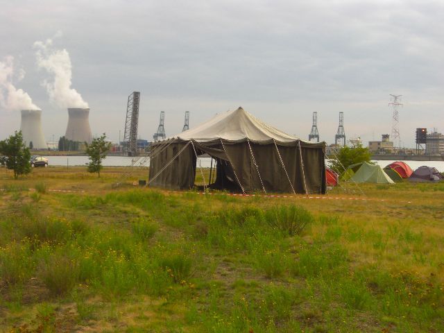 Tevens is er een publiek informatienummer opengesteld voor vragen (bijv ook voor als je het kamp niet kan vinden). Vanuit België kan gebeld worden naar: 0485-916863. Internationaal (vanuit NL dus ook) wordt het dan 0032 485-916863. Vanwege de beperkte internetverbinding in het kamp, willen we alle 'thuisblijvers' vragen om te helpen met het verspreiden van nieuwsberichten en de foto's. Zit je op een emaillijst of ken je een website waar deze berichten op zouden kunnen, kopieer het hier en zet het op de website of emaillijst. Alvast bedankt! | | Grote tent is binnen! | KlimaatKamp - 03.08.2009 00:14