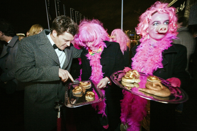 Thursday night, Dec. 9th. For sure it was a very special night. Brooke Shields was in Amsterdam to open the annual Millionaire Fair at the RAI exhibition centre. The opening night was very exclusive: invitees only! The place to be for the rich and wealthy. The market where you could buy anything you absolutely don't need. This year a new product was launched: a product which every millionaire should buy immediately: Golden Shit! Nederlandse vertaling volgt / Dutch translation will follow If you've everything in life: there's just one thing you'll miss. A beautiful piece of Golden Shit! The Piggy Millionaires went to the fair to trade with the ones who could afford Golden Shit. At the opening night hundreds of millionairs passed the red carpet and many of them showed interest in this wonderful new product. The Golden Shit in several sizes was presented on beautiful exclusive silver trays. Some of the shit was originally from celebrities. Of course we had a big one from Brooke Shields, but there was also a small royal one. Top quality solid Golden Shit! Prices starting at 500.000 Euro going up to more than 2 million... but then you'll have something very special! Also a great Christmas gift for your second or third wife! The Piggy Millionaires gave enthusiastic statements about this absolutely great product. Sometimes they even shouted: "Show me you're a millionaire! Forget the rest of the shit of this fair! Go for the real stuff: buy Golden Shit!" Anyway: Golden Shit is the investment we now need in these chaotic times of permanent economic crisis. Most of the millionaires did understand the great opportunities of Golden Shit. Next to it they were especially interested in the 10% discount - only at the opening night! For example: a special offer - not 1.000.000, but only 900.000 for one of the best pieces of Golden Shit. There was only 1 millionaire (or was it someone from the organisation of the fair?) who was a bit jealous and kicked one of the trays as hard he could with his right feet. He was clearly angry. The shit flied all over the place. Luckily the strong Golden Shit survived and the Piggy Millionaires could go on with asking attention for the ultimate gadget. Also the security was in doubt: what to do with so much attention from millionaires for the new product at the red carpet? They decided to don't do anything at all. Which was a good decision. Otherwise the Piggy Millionaires should even have got more media attention. The succesful launch of the great wannahave took more than 45 minutes. Around 21.15 almost all millionaires had entered the fair and it was about time to go home and have a drink to celebrate the fantastic introduction of that beautiful product Golden Shit. The Piggy Millionaires left the area. A few minutes later they got a special salute from a police car with beacon flashing. Although they tried to follow them they were not able to get close c(l)o(w)ntact with the Piggy Millionaires. Why? All of a sudden the Piggy Millionaires were gone... but for sure more Golden Shit will stay and find its way on the Millionaire Fair! Pictures and film will follow E-Mail: rebelact@ddh.nl Website: http://www.rebelact.nl |