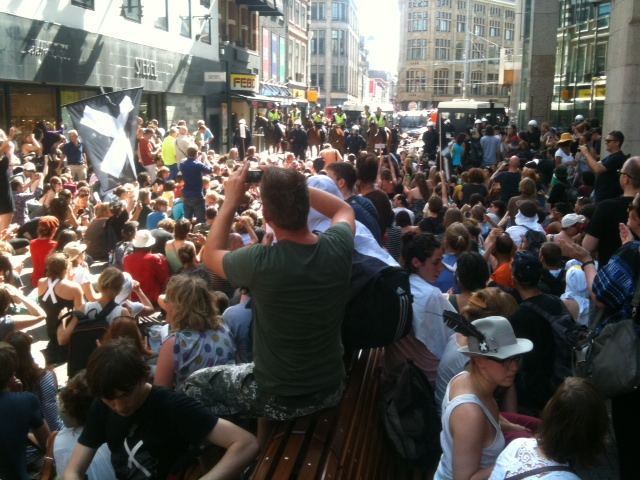 Ga niet naar het Malieveld, daar ga je vermaakt worden door halfgrappige cabaretiers terwijl Zalm, eh Halve Zool staat te zwaaien vanuit het Torentje. En hou op met die hashtag-koppen! | | Ca 13:30 uur Malieveld Den Haag | MdB - 27.06.2011 13:28