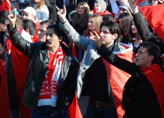 Een groep van zo'n 150 Grijze Wolven en sympathisanten zijn vanmiddag de straat op gegaan in Amsterdam om te protesteren tegen een recente aanval van de PKK. Zondag zijn de extreem-rechtse demonstranten van plan hun protest voor te zetten, dan op het Museumplein om 14.00. De gemeente, die een vergunning voor het protest heeft gegeven, was niet bereikbaar voor commentaar vanmiddag.  Grijze wolven en sympathisanten verzamelen op de Dam Aanleiding voor de protesten zou de dood van 24 Turkse militairen zijn, woensdag om het leven gekomen na een vermeende PKK-aanval. De Grijze Wolven (Turks: Bozkurtlar) is een extreem rechtse Turkse groepering. In het Turks politiek bestel zijn de Grijze Wolven voornamelijk geïnstitutionaliseerd in de MHP (Milliyetçi Hareket Partisi: de Nationalistische Bewegingspartij). In het westen staat de groepering bekend als een fascistische en racistische beweging en is in het verleden namens, dan wel via de Turkse staat, leger of maffiose organisaties betrokken geweest bij liquidaties en aanslagen op andersdenkenden en leden van linkse groeperingen. De naam van de beweging is deels afgeleid van een pre-islamitische Turkse mythologie, waarbij de wolvin Asena een rol speelt. Naast de extreem rechtse signatuur worden de Grijze Wolven ook als panturkistisch, neo-fascistisch en islamofascistisch gekarakteriseerd. Het is uiterst betreurswaardig dat de gemeente Amsterdam toestemming heeft gegeven voor de betoging van deze extreem-rechtse club. |