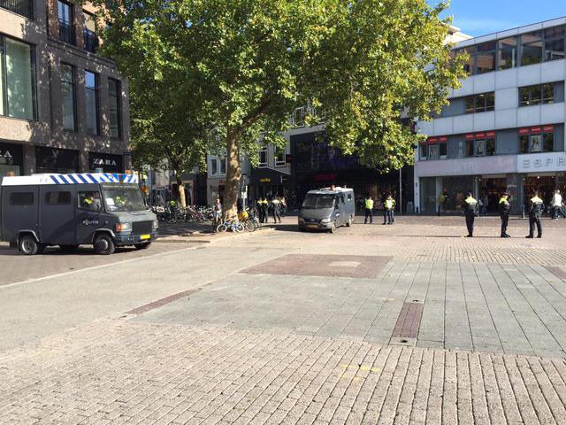 Er is politie te voet en te fiets gespot, gezien bij de ACU (2 busjes), Janskerkhof (3 busjes) en Vredenburg (3 busjes).