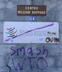 Tijdens een demonstratie voor vrijheid van beweging en vrijheid van informatie vrijdag 30 mei hebben de WTO, de International Office for Migration (IOM) en de World Intellectual Property Organization (WIPO), het zwaar te verduren gehad. De demonstratie was uitgeroepen door het internationale noborder netwerk.