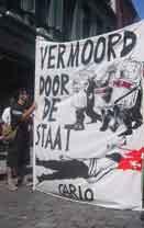 Afgelopen zondag was het twee jaar geleden dat de Italiaanse activist Carlo vermoord is tijdens protesten tegen de G8 in Genua [ Carlo vive! ] Ter nagedachtenis daarvan waren er in diverse steden demonstraties en andere acties, zoals in Ierland, Berlijn en Genua [ diverse links ] De daders van de moord op Carlo Guiliano zijn nooit vervolgd. Er zijn nog wel rechtszaken over de brute invallen en geweld dat de politie gebruikte in de Diaz-school en de inval in het Indymedia-centrum in dezelfde straat toen de G8 al afgelopen was.