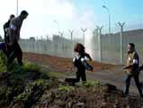 16:44u: Sommige mensen worden met waterkanon van de omheining gespoten, 2 mensen naar Rode Kruis met onderkoelingsverschijnselen.