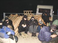 Fort Pannerden resquated! November 25th 2006 at 21.15h Fort pannerden was resquated by a group of about 80 squaters from all over the Netherlands. Tuesday 7 and wednesday 8 november it was evicted by the police helped by the army. The official reason for the eviction was "uninhabitability" which is rather strange since the local counsel is planning to house "anti-squaters" in the building. Fort Pannerden was squated june 25th 2000. The occupants repaired and maintained the building. They cared for the nature reserve in which the fort is situated and opened it up for visitors and organised small scale activities. 21.15h: Fort Pannerden is back into the hands of the squaters. A small group went ahead to asses the situation, soon more squaters (about 80) arrived. There are people inside and the entrance is being barricaded. there are still people ariving. The three security guards present have left head over heels. a couple of neighbours came to look what was happening and have no problems with the return of the squaters. There is no police sighted. 21.46h: Two policeman arived at the beginning of the dike leading to the Fort. They were not amused at all. A fotographer was told to immediately stop taking pictures. There are about 25 people at the dike and about 60-70 people inside barricading some more. The two policeman won't get past the 25 people, so they have no idea what has happened inside. There are still more neighbours ariving to look form a distance. 22.19h: A second police car arived and left. The two policeman who were first at the scene have callmed down a bit and are now walking through the fields, but they are not getting close to the Fort. There is a baricade made up out of pallets and a caravan at the beginning of the dike, so you can't acces the "driveway" to the Fort with a car. a second fence is erected in front of the drawbridge. There is a barrel with fire on the roof as a beakon to let the neighbourhood know the squaters are back "home". The spirits are high. An occupant said to the police: "We're back in and there is nothing you can do about it, if you want us out, you'll have to call the army again." The corporate press has also arived. 22.32h: The drawbridge is in service again and was immediately raised. Spirits are excited. The squaters are sounding the sirens. 22.42h: Two other police cars arived, they are standing a bit further away and are whatching things. It doesn't look like they are planing to do more then keeping a close eye on things. 23.23h: More corporate media is ariving. The neighbours have discussed amongst themselves and have made up their minds about the resquating. They don't want another military eviction as earlier this month. They are intending to demand the counsil to open a normal dialogue with the squaters. The belongings of the people who were evicted some weeks ago are all still in the Fort, opened, searched and trashed. In contrary to what the local counsil has said the belonings are not carrefully handled and it was not intended at all to return the belonging. They would probbaly have been thrown away soon. 1.10h: More police is ariving. They are around the corner, a bit in hiding. The police judges the first barrikade to be a problem, since it is placed on public road. More corporate media is arriving, they are given a tour around the Fort at the moment. There are still neighbours pressent, although some of them have returned home. | | herkraak op nu.nl | bobbes - 26.11.2006 00:29