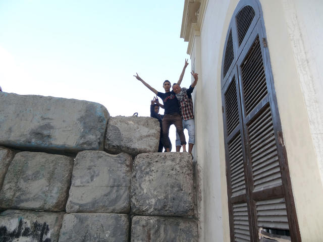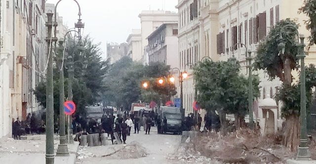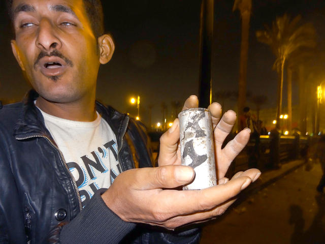 De speciale politie eenheden in Caïro gebruiken extreem veel geweld: ze gooien stenen terug naar (onbeschermde) demonstranten, ze schieten met traangas. Mogelijk gebruiken ze ook een ander gas dat mensen verlamd: op grote afstand voel je 'naalden' in je ogen (voor ons werd het toen tijd om in een andere richting te gaan lopen).