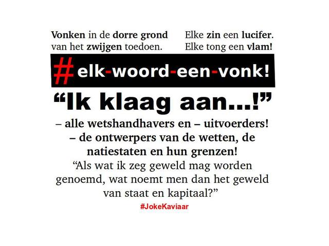 http://13-september.nl/slotwoord-elk-woord-een-vonk/ Het slot woord van Joke Kaviaar: "Elk woord, een vonk"