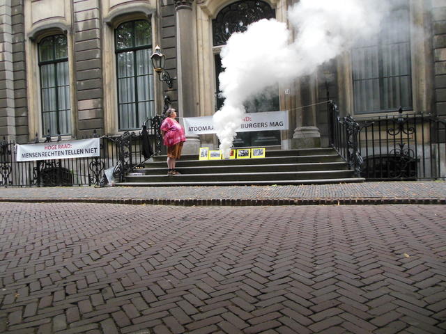Vanwege deze oorlogsmisdadige uitspraak zijn we gister, dinsdag 6 augustus (atoombom op Hiroshima) op de stoep bij de Hoge Raad gaan zitten en we blijven daar tot vrijdag 9 augustus (atoombom op Nagasaki).