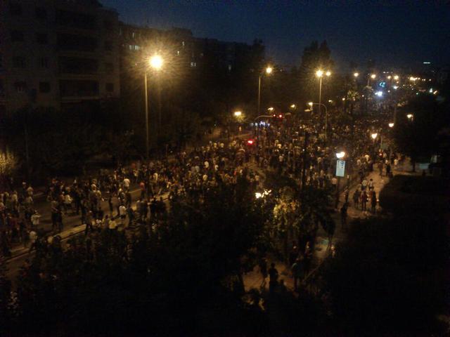 Vers 20 heures les estimations parlent de 20 000 à 50 000 manifestants présents. L’unité anti-émeute passe à l’attaque de la foule, traverse celle-ci sur les motos, asperge de gaz lacrymogènes les manifestants, lance des grenades assourdissantes, des coups de matraque sont distribués et arrestations effectuées : 65 détentions. Les manifestants ripostent. L’atmosphère s’épaissit et devient irrespirable. Les combats de rue s’amplifient.