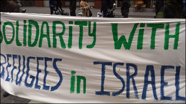 Woensdag 22 januari is er een internationale solidariteitsdag met Afrikaanse asielzoekers in Israel. De groep uitgeprocedeerde vluchtelingen in Amsterdam die zich heeft verzameld onder de naam ‘Wij Zijn Hier’ ondersteunt deze actiedag met een demonstratie bij de Israelische ambassade in Den Haag waar wij zullen protesteren tegen het discriminerende en inhumane vluchtelingenbeleid van Israel