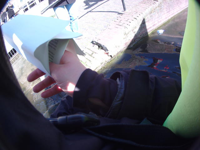 met de microfoon van Pownews voor de neus! En opgesloten in de arrestantenbus waar een agent de gegevens noteert.