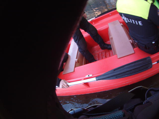 Iets na half twaalf zijn de eerste activisten uit het water gehaald door politie in een boot.