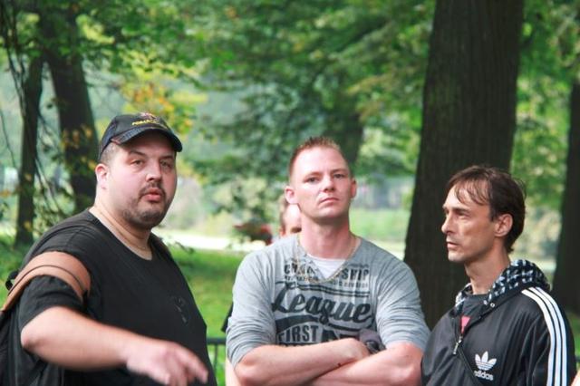 Foto 7. V.l.n.r. met lichtgroene pet en in zwarte blouse de immer slecht geklede en vadsige Rick Pakvis, NVU-kringleider Dordrecht en voorzitter van de jongeren afdeling van de NVU Germaanse Jeugd Nederland (GJN), in blauw Converse All-Starts t-shirt de neonazi en pedofiel Michel Boerboom die als volwassen dertiger een relatie had met de destijds 16 jarige NVU-activiste Mady Kleeven. Helemaal rechts de al 18 jaar lang een uitkering trekkende Hagenaar Ed (3) die in zijn YouTube filmpjes uitlegt hoe je ijs hasj kunt maken (4).