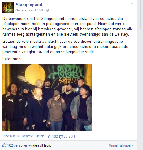 Toen ons ten gehore kwam dat het Slangenpand herkraakt was op 24 maart herkraakt was hebben wij direct AT5 op gezet. En daar begon de ellende.