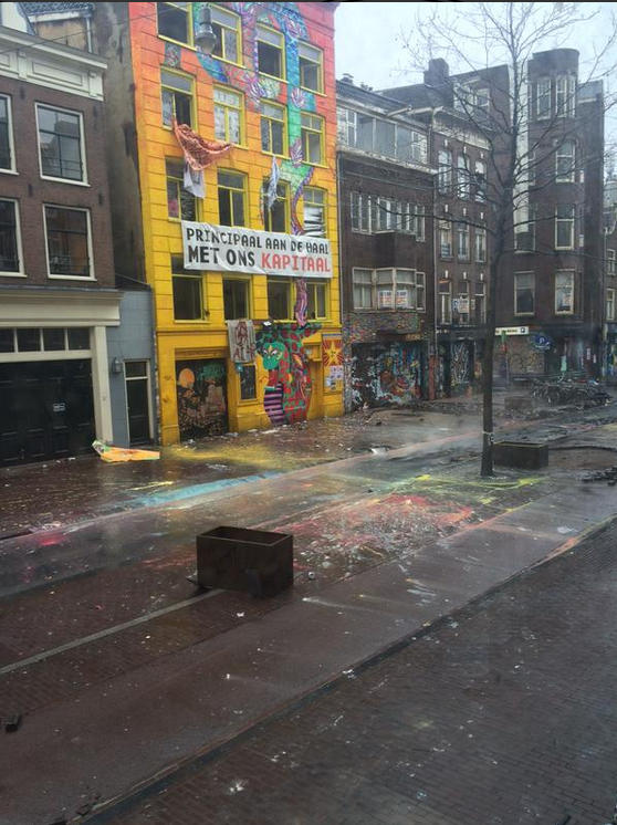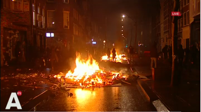 * vannacht zijn er wat barricades in de Spuistraat in de fit gestoken en is de straat wat open gebroken.