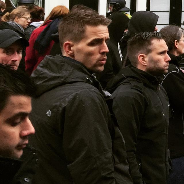 haha, duitse toeristen zeggen in een interview dat de kraker in de gele regenjas 'de leider' moet zijn.
