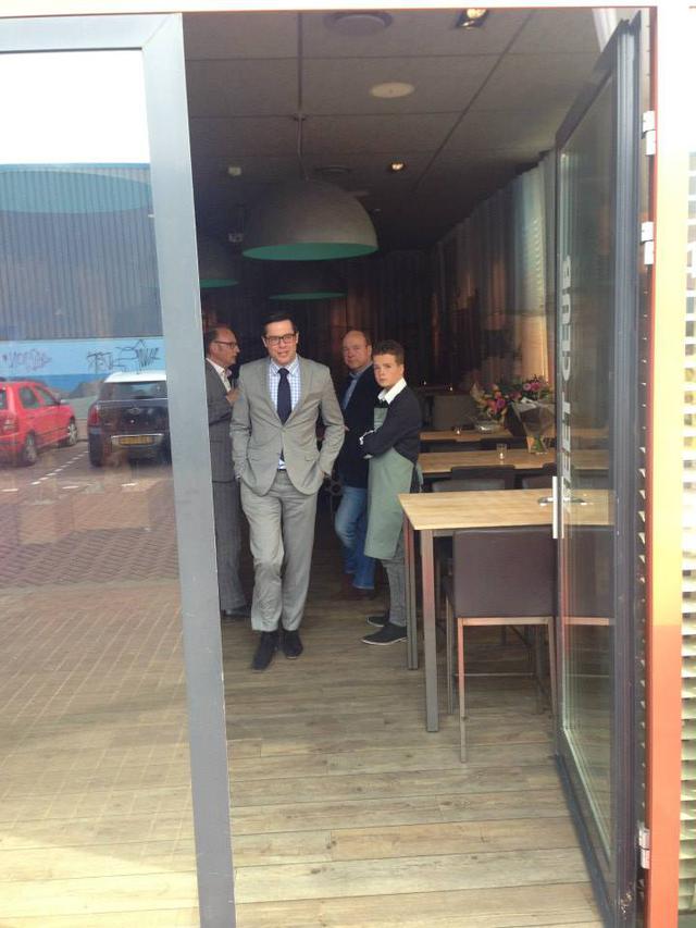 Vandaag (29-04-2015) voerden sympathisanten van vrijplaats De Vloek actie bij de heropening van restaurant At Sea, gevestigd in het Nautisch Centrum in de straat bij De Vloek. Niet omdat het fout is dat een restaurant zijn deuren na drie keer failliet te zijn gegaan weer opent, maar omdat wethouder Karsten Klein aanwezig was.