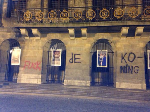Paleis op de Dam beklad met woorden 'fuck de koning'