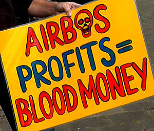 Airbus maakt gevechtsvliegtuigen, gevechtshelikopters en raketten, waaronder kernraketten. Saoedi-Arabië bombardeert Jemen met door Airbus geproduceerde Typhoon gevechtsvliegtuigen.