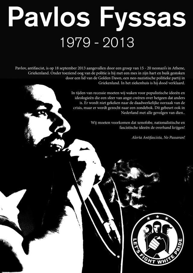 Pavlos Fyssas, a 34 year old antifascist and hip hop artist (Killah P), was murdered by Golden Dawn neonazis in Keratsini, a working class neighborhood in Piraeus.