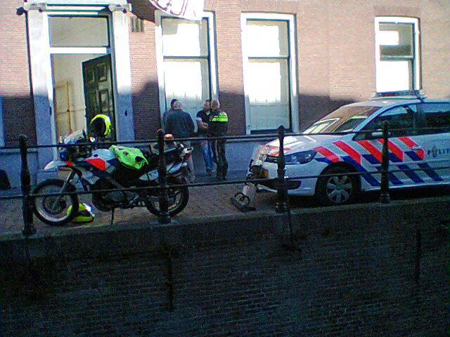 Terwijl de eigenaar toekijkt hoe de politie de krakers een voor een uit het pand haalt en hen naar het politie afvoert, roepen medestanders vanaf de gracht 'kraken gaat door'.