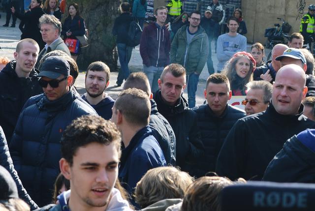 Tegendemonstranten nu ook op vredenburg, lijken dichterbij te komen