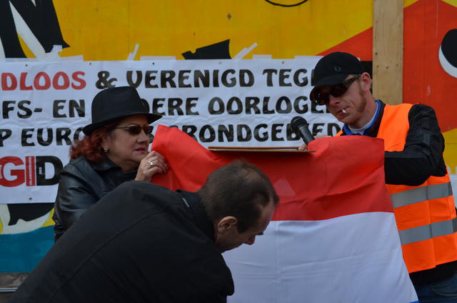 Aan deze manifestatie deden minstens vijf neonazi's mee die een dag eerder (zaterdag 10-10-2015) meeliepen in de demonstratie van de neonazistische Nederlandse Volks-Unie in Gouda, waaronder een lid van de PEGIDA Nederland organisatie (foto 3 rechtsextremist met flinke bakkebaarden die Raffie Chohan leidster van de anti Islam organisatie Dutch Defense League helpt).