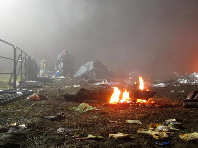 The place is basically a field crowded with cops. No infrastructure is present except some portable toilets and a few blankets. It's a spot where the refugees can rest for a while and then continue walking to buses for 1 km. People try to get warm by burning plastic rubbish. No official NGO structure could be found anywhere other than some UNHCR people walking around. We as an independent volunteering group were able to distribute hot food, potable water and clothes.