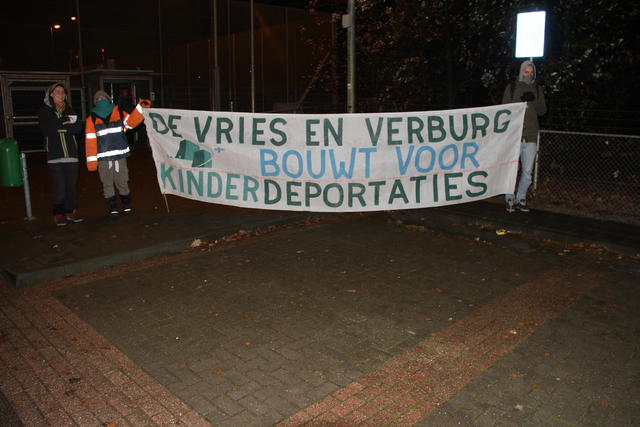 The action is part of a longer running campaign against the construction of the new family prison and for shutting down the detention center and the current temporary family prison at Kamp Zeist.