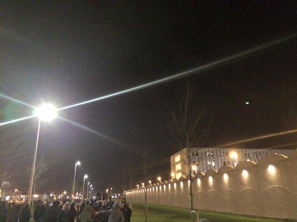 Op oudejaarsavond 31 december 2015 hebben wij met 120 mensen een zwaaidemonstratie gehouden bij migrantengevangenis Schiphol. Dit gebeurt elk jaar in solidariteit met de mensen die vast zitten om hen een hart onder de riem te steken, hopend op een nieuw jaar in vrijheid.
