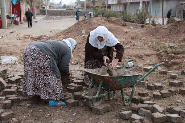 Koerdische moeders bouwen muren en loopgraven in Nusaybin om de Turkse troepen uit hun wijken te weren. Bron: @rojinakin