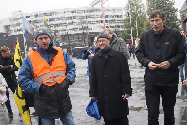 Foto 8. Rechts in oranje veiligheidshesje gestoken de leider van de Nederlandse tak van de Vlaams-Nederlandse ultranationalistische actiegroep Voorpost, steigerbouwer Florens van der Kooi uit Rotterdam. Florens is het jongere broertje van de beruchte rechtsextremist Ben van der Kooi.