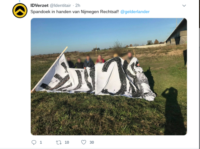 Precies bij de aankomst van de pakjesboot met sinterklaas en zwarte pieten rolden Nijmeegse activisten een megaspandoek uit met de tekst “zwarte piet is racisme” aan de overkant van de rivier.
