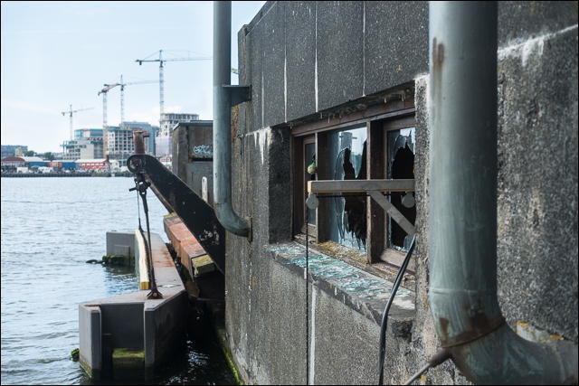 Het gebouw dat wij hebben overgenomen ligt aan het IJ ter hoogte van de Distelwegveer en had vroeger een technische functie. De Distelwegveer was de enige veer waar goederenwagons voor de chemische industrie in het Buiksloterhamgebied op werden getransporteerd. Later werd het gebruikt voor auto's. De laatste veer met auto's meerde in 2007 af. Inmiddels is het gebied in herontwikkeling (2009-2030) en doet de gemeente onderzoek om de Distelwegveer te verplaatsen naar een meer rendabele locatie. Het gebouw is van binnen en buiten nooit meer onderhouden en wachtte tot afgelopen weekend een onbekende bestemming.