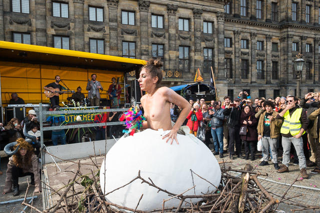 Dans mee, buiten de lijntjes, dwars door Amsterdam. Versterkt door alternatieve geluiden, geven we in deze kleurrijke stoet een oorverdovend signaal af aan onze stad: Wij geven de vrije ruimte niet zomaar op. Want als er één hek van de Dam is, dan volgen er meer!