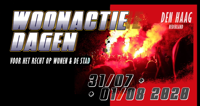 Op Vrijdag en Zaterdag 31 juli en 1 augustus zullen in Den Haag woon actiedagen plaatsvinden. Het thema voor vrijdag is sociale huur en precaire woonvormen, zaterdag is het thema het uitverkopen van de stad en gentrificatie. Gedurende de twee dagen zullen we collectief een vuist maken tegen precariteit en woningnood.