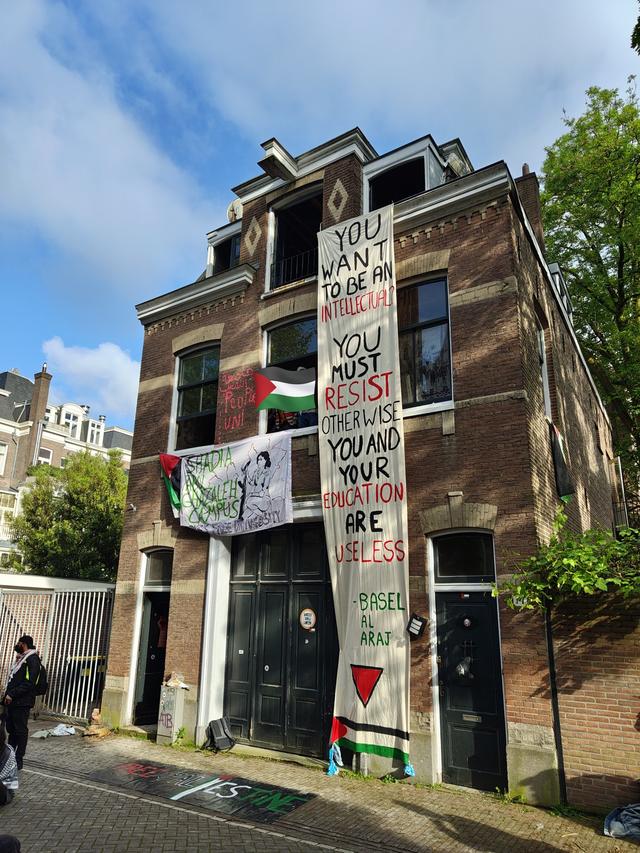 Vandaag, op 25 mei, begonnen pro-Palestijnse demonstranten met hun protest op het Spui om 14:00. Deze demonstratie bewoog zich door de straten van Amsterdam naar Achter Oosteinde 16, waar de demonstranten onthulden dat een gekraakt pand wordt opengesteld voor het publiek als de eerste campus van the People's Free University. De Shadia Abu Ghazaleh Campus zal een ruimte van verzet zijn waar men van elkaar kan leren en elkaar kan onderwijzen. De campus is vernoemd naar een van de eerste Palestijnse vrouwen die deelnam aan gewapend verzet in 1967: "Zij kende het belang van kennis en educatie in de strijd voor bevrijding. [...] Wij zullen deze ruimte in haar nalatenschap creëren," zeggen de demonstranten.