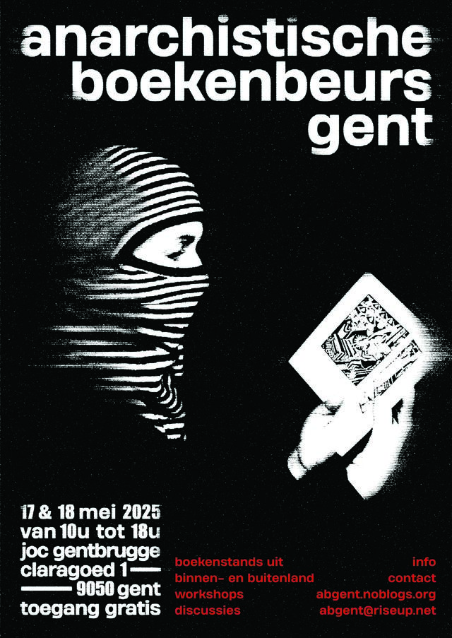 wil tot subversie in zich. Oorlog en militarisering zijn overal rondom ons. De regering smeedt plannen om oorlogsfabrieken te bouwen, voert opnieuw de militaire dienst in en wil van het land de logistieke draaischijf van oorlogsvoorbereiding maken. Besparingen op alle fronten gaan rechtstreeks naar de oorlogskas. Oorlogsretoriek wordt het nieuwe normaal. Om het militair-industrieel complex vorm te geven, hebben de staten en het kapitalisme niet enkel kanonnenvlees en werkmensen nodig, maar moeten ze ook de aarde alsmaar diepgaander plunderen. Overal in de wereld worden mijnen uitgebreid of heropend, op zoek naar grondstoffen om hun economie te voeden. Het zijn sombere tijden, waar angst en wanhoop nooit ver zijn. Overal ter wereld vechten mensen tegen deze mechanismen van macht en geld. Voor ons is de boekenbeurs een plek om deze strijden te delen, te verdiepen, te versterken.